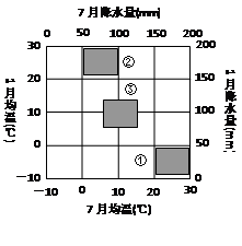 点评:本组题的关键是要求考生能根据所学的气候类型的判定方法,判定出图中的①、②、③的气候类型,同时各自的成因、分布规律有一个比较全面的了解与掌握,考生不容易准确地读出图中①、②、③的气温与降水的数值特征,试题难度比较大,属于中档偏难的题目
