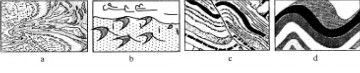 本题解析:试题分析:图示a表示河口三角洲,是流水沉积作用而形成的,属于外力作用形成的地貌;图示b表示沙丘,是风力沉积而形成的,属于外力作用的结果;图示c表示岩层发生断裂、错位,为断层,属于内力作用而形成的;图示d表示岩层发生弯曲,为褶皱,属于内力作用而形成的。