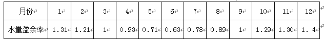 3、单选题 水量盈余率是衡量水库蓄水量变化的重要指标(水量盈余率=流入量/流出量),下图为某区域略图,表格数据为图示水库各月水量盈余率统计表。据此完成下列各题。