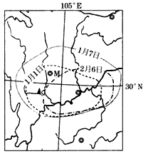 4、单选题  霜是大气中的水汽凝华在地面或地物上(如草叶等)形成的冰晶,一般形成在冬季晴朗、微风或无风的夜晚。下图为某区域2010年冬季三个日期的无霜区分布范围示意图,图中无霜区外均为有霜区。读图回答1—2题。