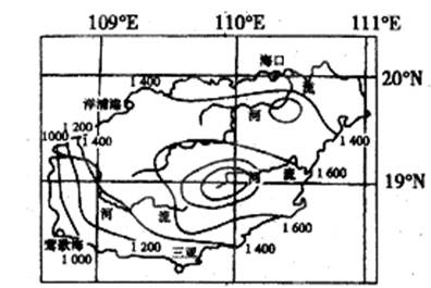 2、单选题  下图为我国某岛屿年平均降水量(毫米)分布图,读图回答下列各题。