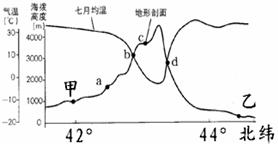 小题1:图中a、b、c、d四个地点七月均温在0℃以下的是