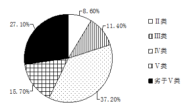 2013年3月,武汉市环保局发布的《2012 武汉市环境状况公报》显示,城区湖泊水质较往年有所好转,但形势不容乐观(如图)。2012年武汉市评选出“十大突出问题”,“湖泊保护和污染”位列其中。下图为武汉市主要湖泊(水库)水质类别构成比例。