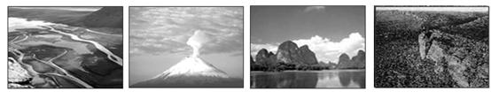 小题2:根据图示的景观判断,①为河流中下游的冲积平原,属于流水沉积作用的结果;②为火山喷发,属于内力作用的结果;③为桂林山水,属于流水溶蚀作用的结果;④为断层,属于内力作用的结果。