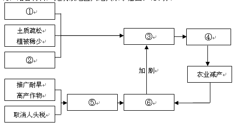 ③—水土流失?④—耕地减少(或土地退化) ⑤—人口增长?⑥—过度开垦(③④⑤⑥各2分)