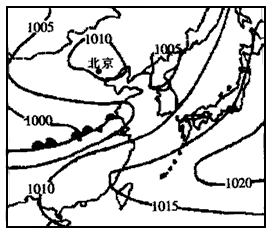 1、综合题 读下图“亚洲东部地区气压分布图(单位:百帕)”,回答下列问题。