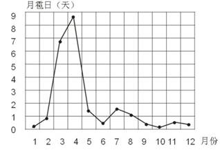 50mm。月雹日指月降雹的天数,图20示意我国东南沿海某省多年平均月雹日的变化。读图