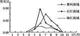 小题1:从图中可以看出,峰值出现月份与降水季节变化基本一致。峰值出现的时间由南向北逐渐推迟。黄河流域的受灾比最大,珠江流域的受灾比最小。