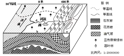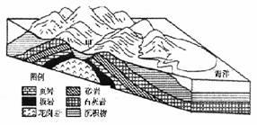 3、综合题 下图是某地区等高线地形图和海平面以下地层示意图,读图回答问题。(11分)