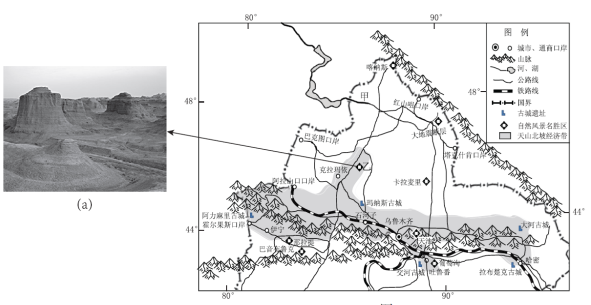 B.天山山脉、沙丘地貌