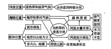 5、单选题 读图“某岛国地理环境要素关系图”,完成问题。