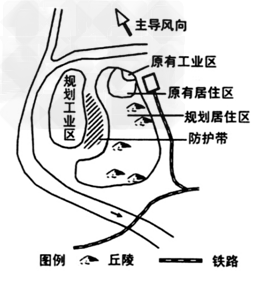 1、单选题 某城镇用地布局规划方案示意图。读图回答1—2题。