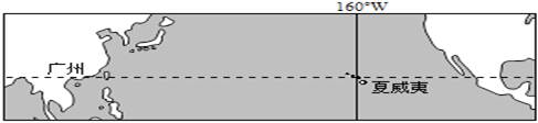 1、单选题 广州(113°E)的陈先生到纬度大致相同的夏威夷(156°W)休假,飞机在