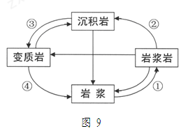 3、单选题 读“地壳物质循环示意图9”,回答题。