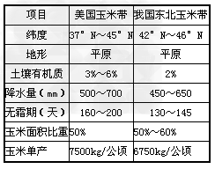 (3)下表为美国玉米带和我国东北玉米带的比较: