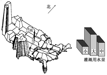 根据图示:甲位于美国西海岸为旧金山附近。该地区农业地域类型发生了变化,主要是因为该地区经济发展迅速,对蔬菜水果的需求量增大,农业用水量增减。所以本题选择C选项。