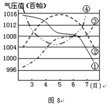 4、单选题 如图为“四种常见天气系统经过不同地区时气压变化过程曲线图”,读后回答以下各题。