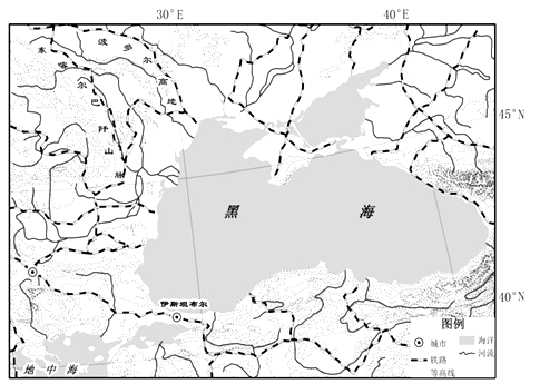 5、综合题 (12分)黑海地处亚欧两大洲的交界地带。历史文化名城伊斯坦布尔,是土耳其最大的城市和海港、重要的金融和工商业中心,有众多国际著名酒店进驻。根据下列材料,结合所学知识,完成下列问题。