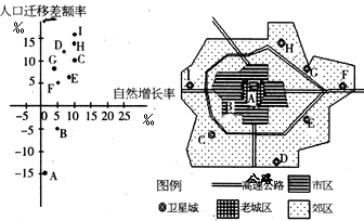 5、综合题 读某城市略图和该城市各地区2008年人口变动示意图(人口迁移差额率为人口迁入与迁出的差额与总人数的比重),回答下列问题:(11分)