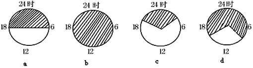 3、单选题 下图表示12月22日a、b、c、d四城市昼夜长短情况示意图,阴影部分为黑夜,据图回答下列各题。