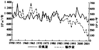 C、1950~2005年输沙量的变化率高于径流量的变化率