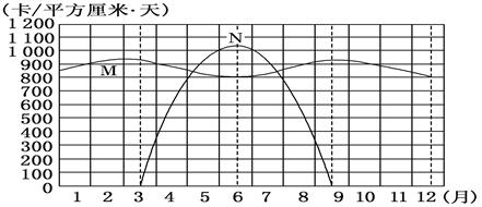 1、单选题 下图“是M、N两地太阳辐射的年际变化示意图”。读图,回答问题。