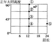 小题5:假设黄赤交角变为35°,这时,地球上北半球夏至日正午太阳高度将自________(纬度)纬线向南、北降低;在地球上“五带”的划分中,与现在相比,范围将扩大的是________________。