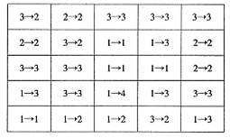 4、单选题 地理学中常用方格网法来研究各种问题。下图是“苏北某乡镇土地利用变化情况”,该图将该区域划分为25个方格,每个方格中的两个数字分别代表1980年和2012年的土地利用变化,其中数字“1”、“2”、“3"、“4"分别表示湖泊、居民点用地、耕地、经营用地(如农家乐等),读下图完成下列问题。