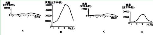 (4)下面四图为我国长江、黄河、松花江、珠江四条河流流量对比图,请根据这四条河流水