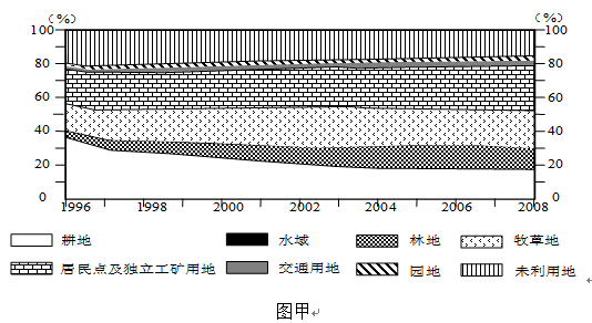 材料一? 1996-2008年西宁市土地利用类型结构变化图(图甲)