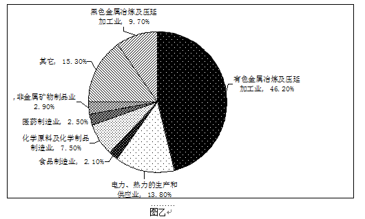 材料二? 2011年西宁市工业产值结构图(图乙)