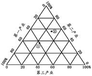 5、单选题 读某区域三次产业结构及变化示意图(其中①表示1980年产业结构,②表示2006年产业结构),完成问题。