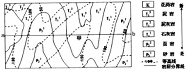 1、下列四幅剖面图与沿ab剖面线的剖面图一致的是