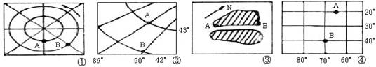 5、单选题 在下图中,A在B的方位排列顺序正确的是(?)