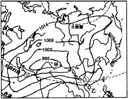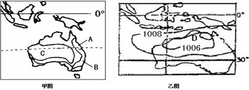 3、综合题 读澳大利亚及附近区域图,乙图为一月海平面等压线分布图。读图回答问题。(6分)