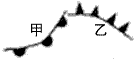 3.夏季风从海洋吹向陆地,则乙处为海洋,海洋气温低,气流下沉,形成高压。所以本题选择D选项。