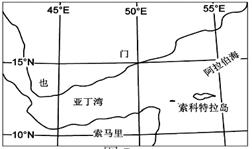 5、单选题 索科特拉岛曾经与非洲的索马里半岛相连,岛上有许多奇特的动植物,下图是索科特拉岛位置图。读图回答下列各题。