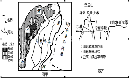 (1)利用图甲、图乙,简述宁夏平原的成因。(2分)