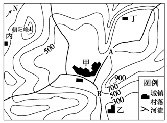 (4)从自然条件的角度,说明甲处成为该区域中心城镇的主要原因。(3分)