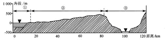 小题2:从地质构造的角度分析,③处形成的主要原因是