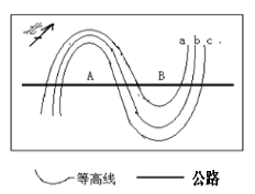 C.若等高线a>b>c,则高速公路中A处可能通过的是桥梁,B处可能是穿过隧道