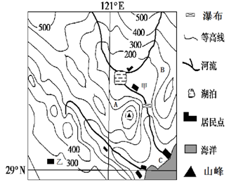 1、单选题 翼装低空飞行则是由低空跳伞运动发展而来,其固定对象可以是建筑物,电视塔,烟囱,桥梁,电力塔,悬崖,缆车,水坝或其他任何足够高的物体。下图为某地等高线地形图(单位:米),图中山峰海拔576米,瀑布落差23米,读图回答下列各题: