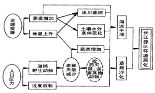 2、综合题 图示为长江源区环境恶化过程示意,试从自然和人类活动两个方面概述长江源区环境恶化的原因,并提出防治的建议。