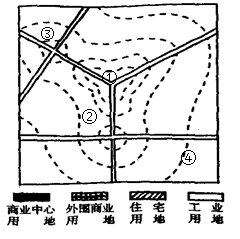 4、单选题  读某城市地租分布等值线示意图,回答题: