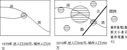 小题1:据图分析,与1978年相比,2010年该地区城市化水平明显提高的标志有哪些?