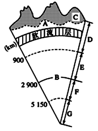2、单选题 地球内部圈层示意图(下图),回答下列各题。