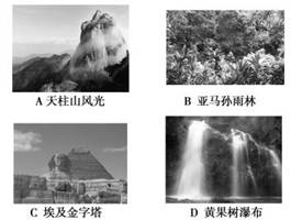 2、单选题 右下A、B、C、D图中的景观属于自然旅游资源的是: (? )