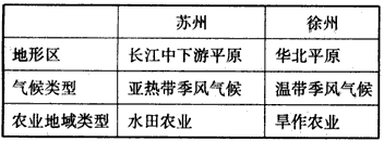 2、填空题 填表比较苏州和徐州农业生产区位条件。