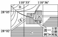 2、综合题 下图为“我国江南丘陵地区某城市平面图”,分析后完成下列问题。