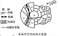 1.图中字母分别代表城市中的不同功能区。其中a区
